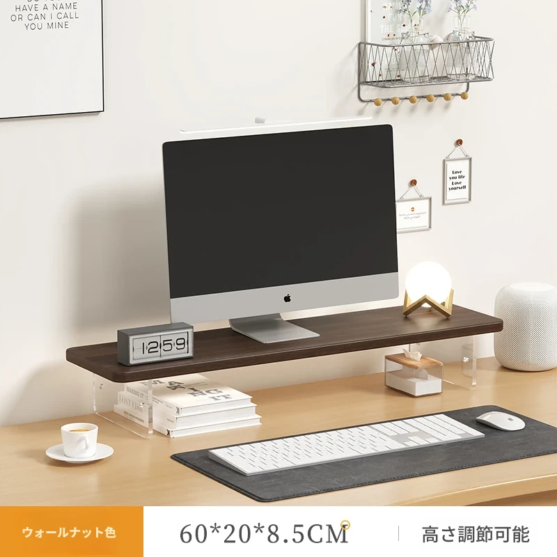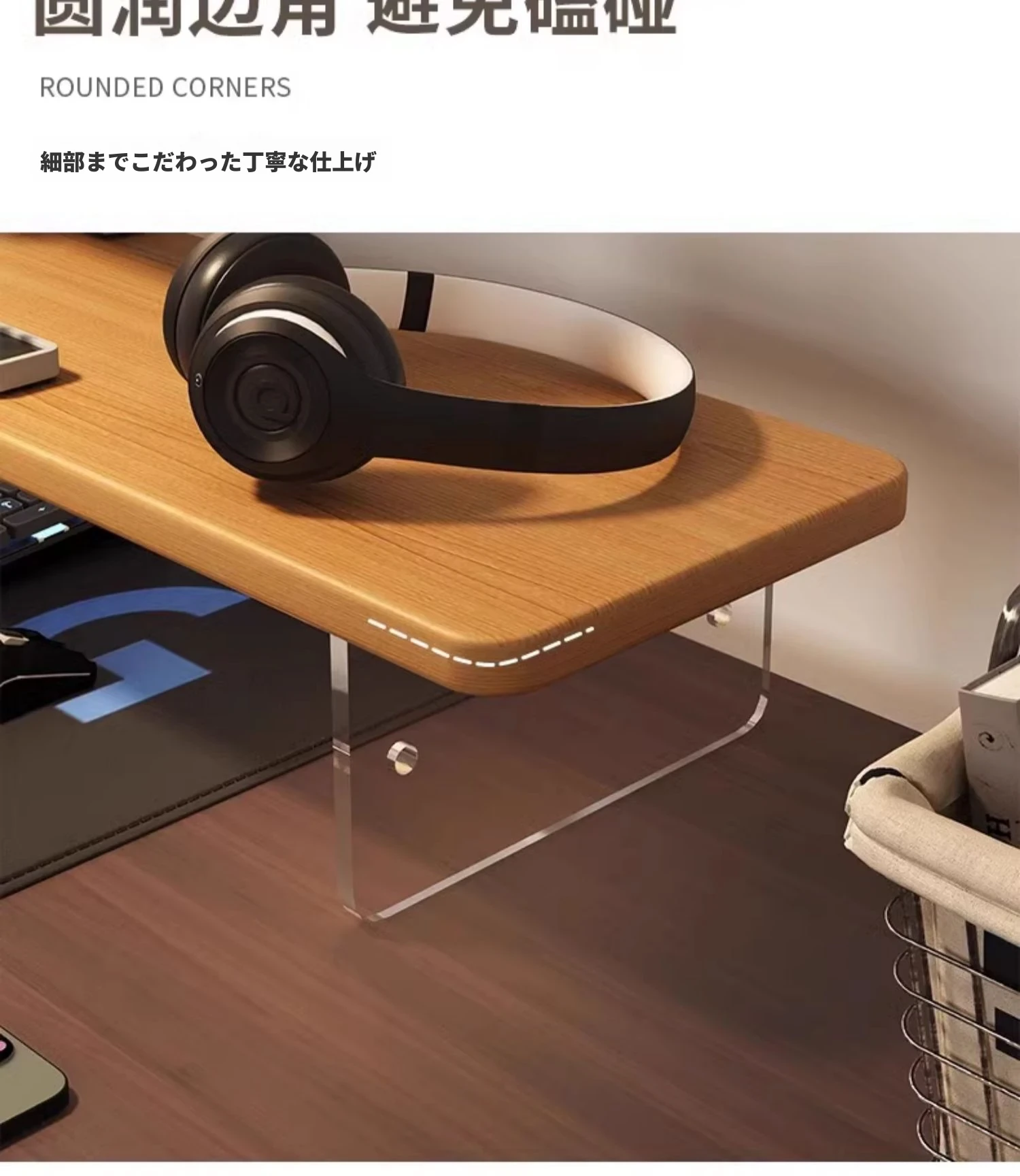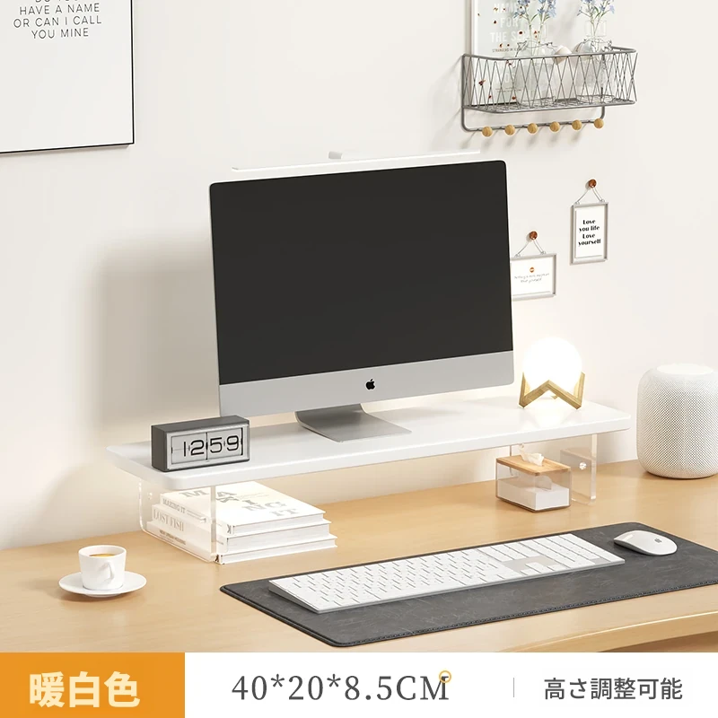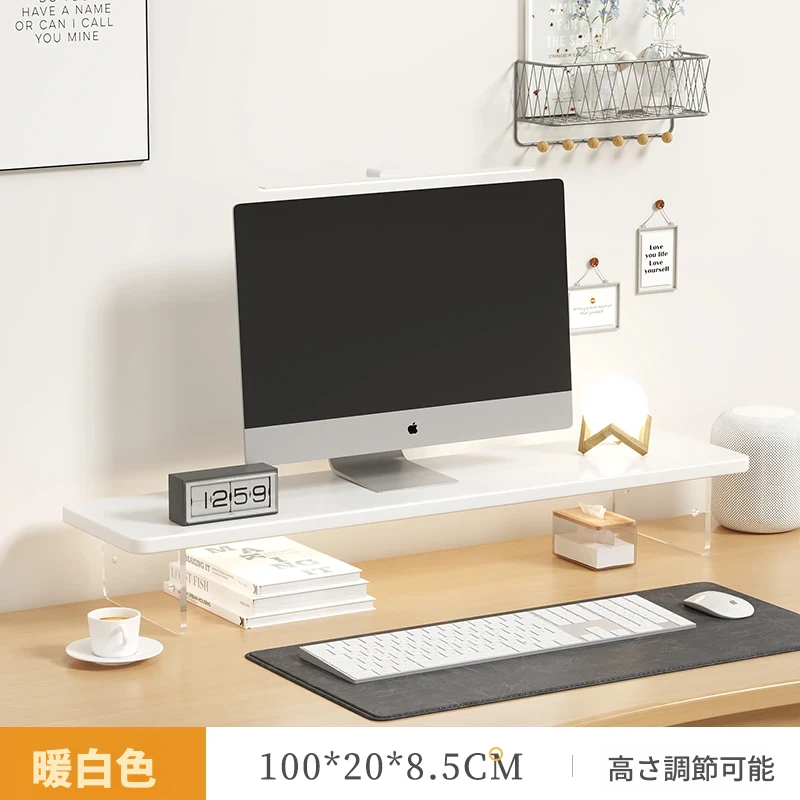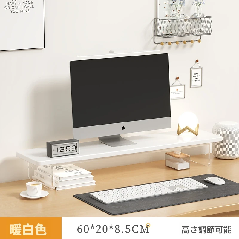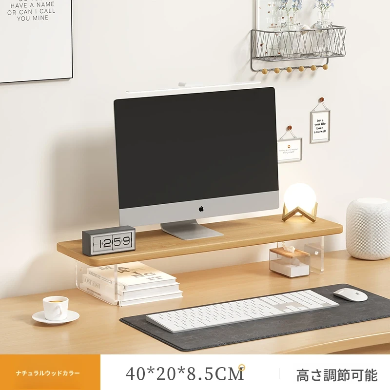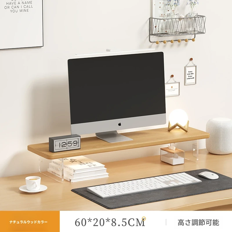 三夢アクリル浮上式デスクトップモニター台、家庭用の木製スタンドでデスクをスマートに整理!高さ調整可能で快適な作業空間を実現。