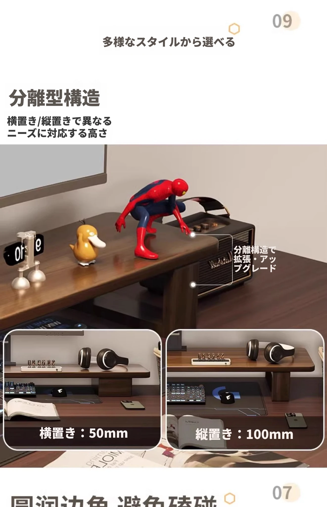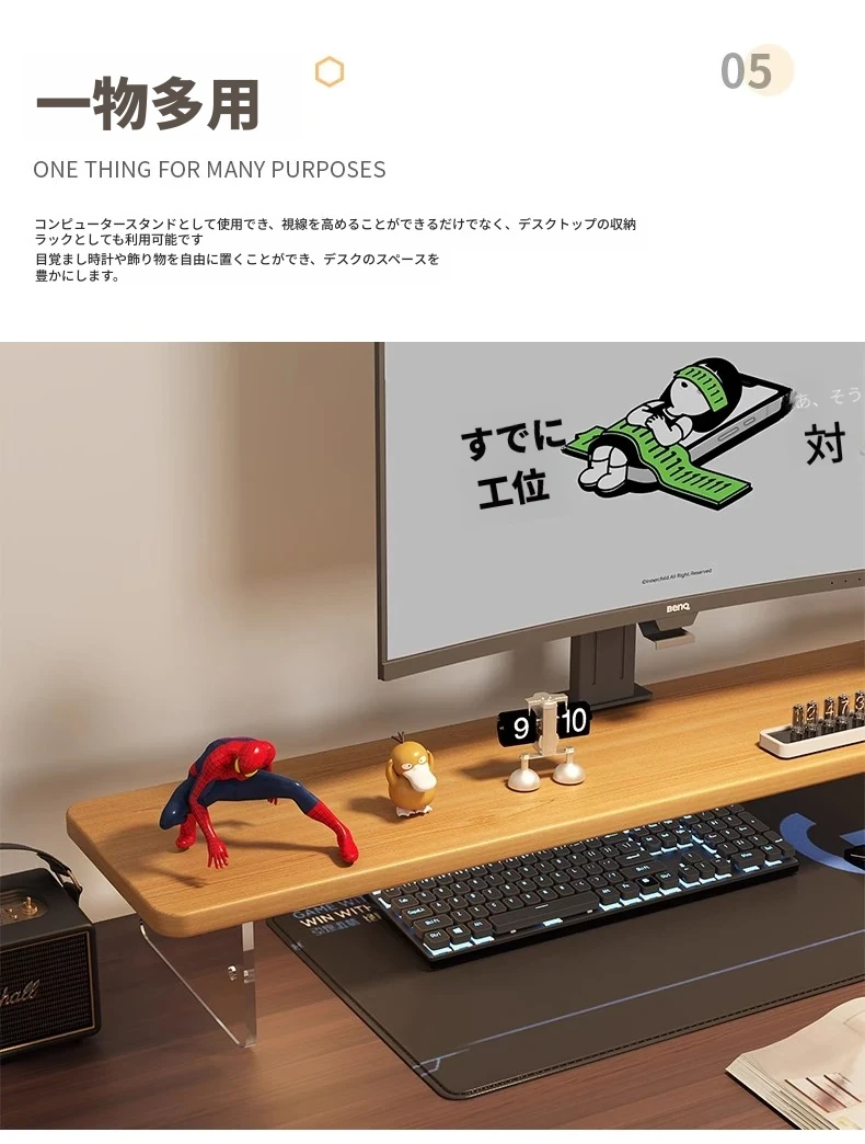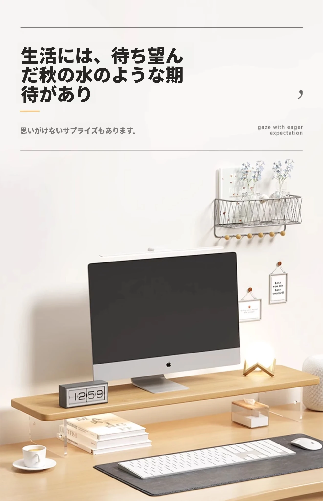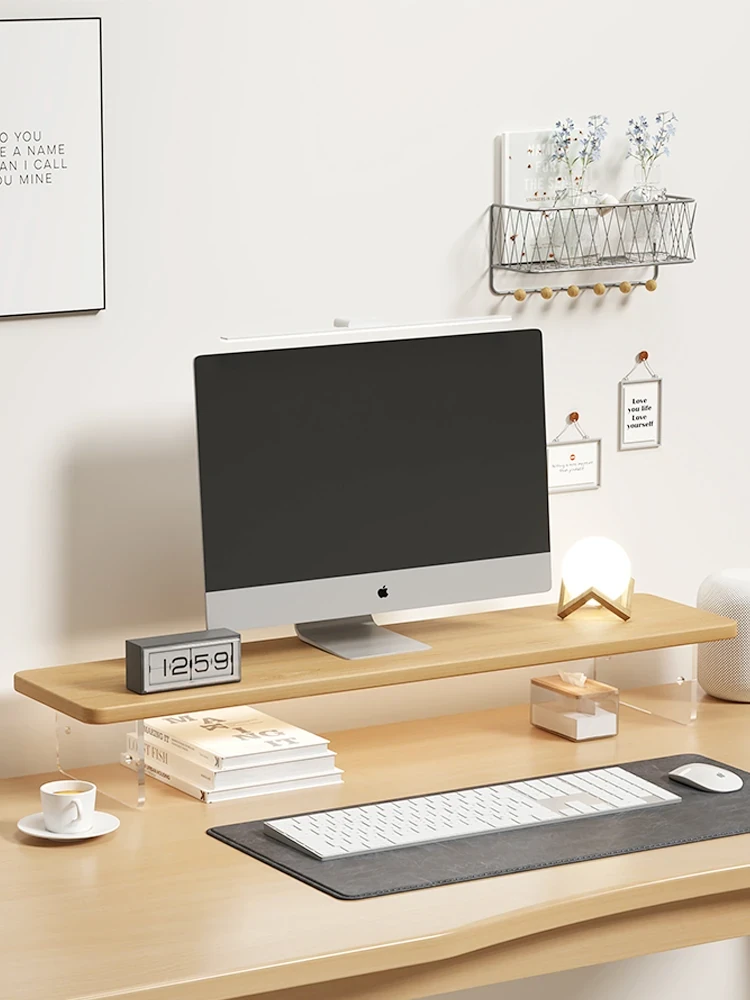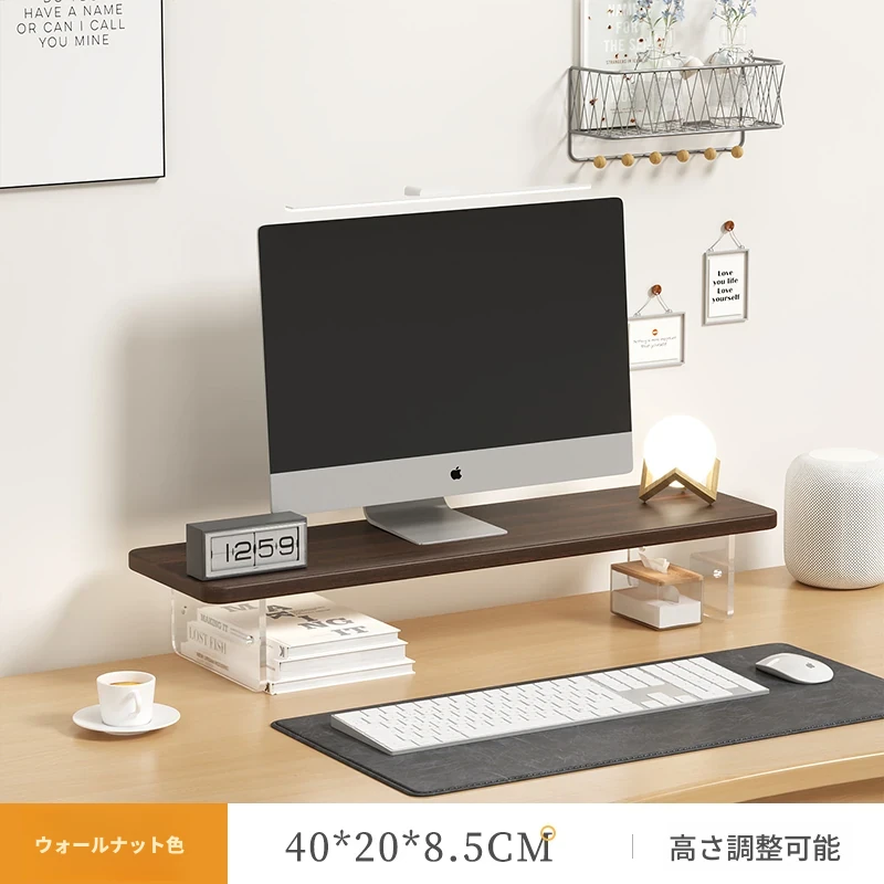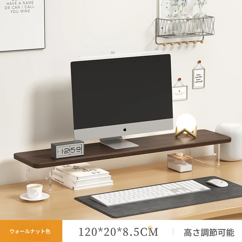 三夢アクリル浮上式デスクトップモニター台、家庭用の木製スタンドでデスクをスマートに整理!高さ調整可能で快適な作業空間を実現。