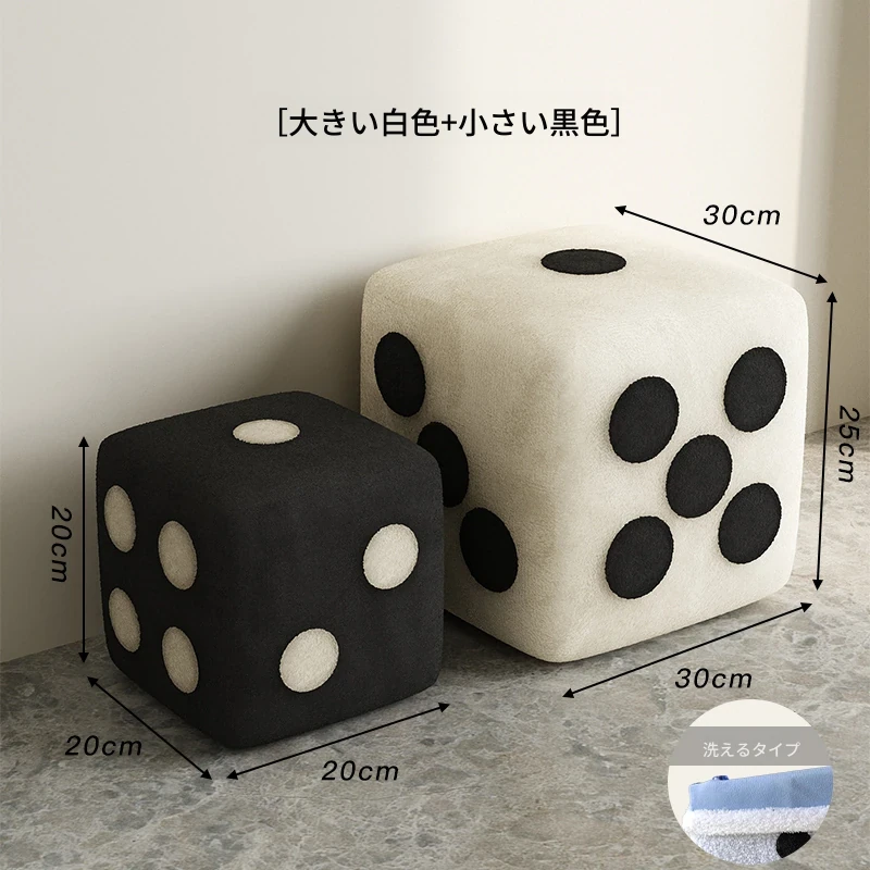 サイコロスツール【無垢材フレーム】白-小サイズ(洗える)