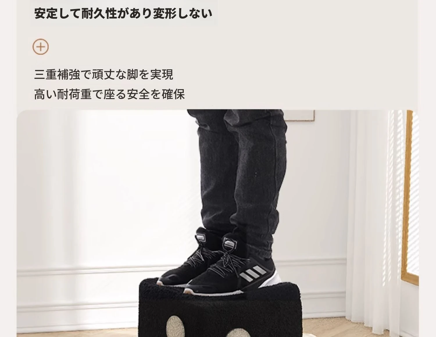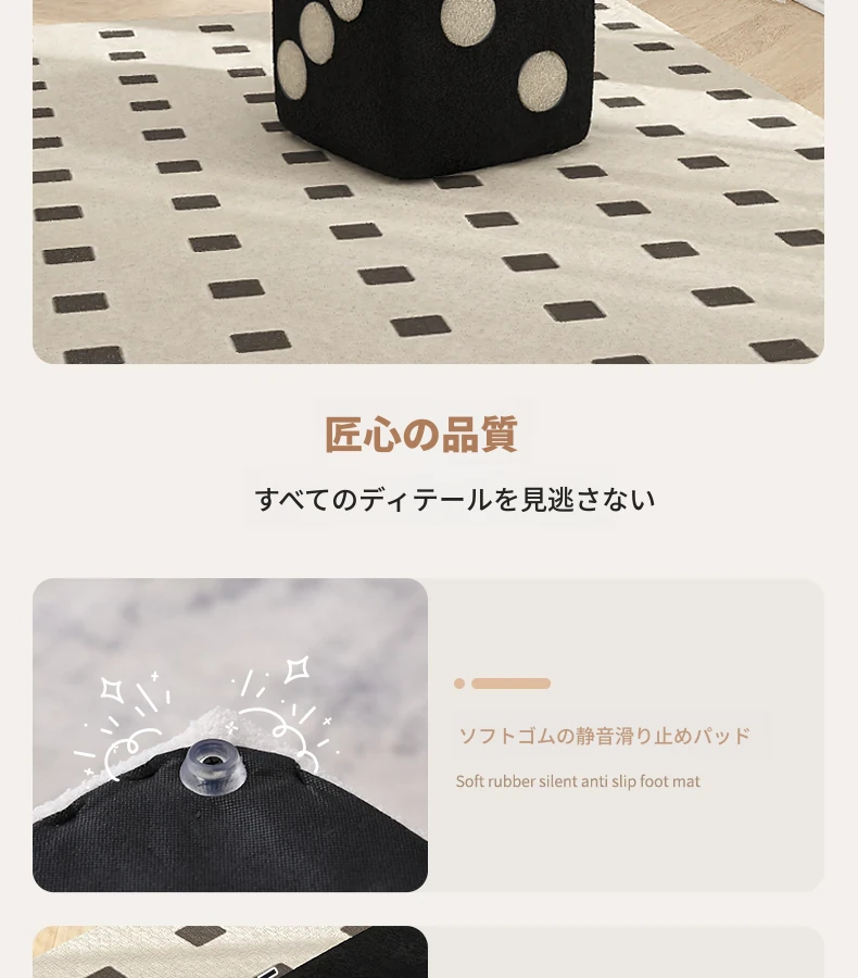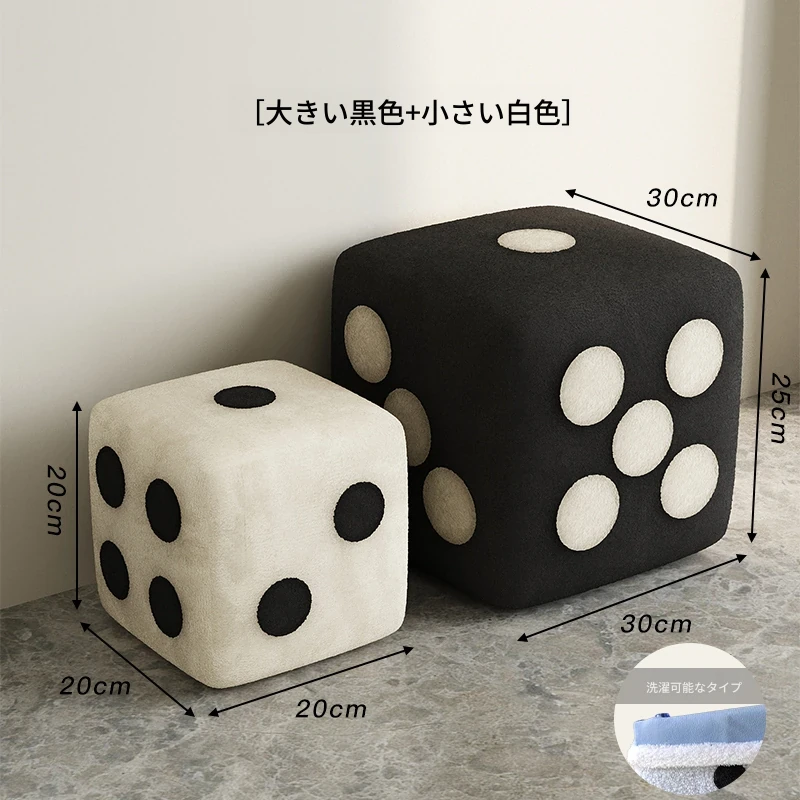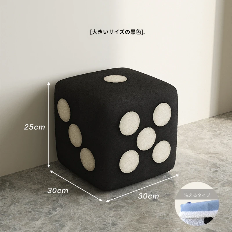 サイコロスツール【無垢材フレーム】黒-大サイズ(洗える)