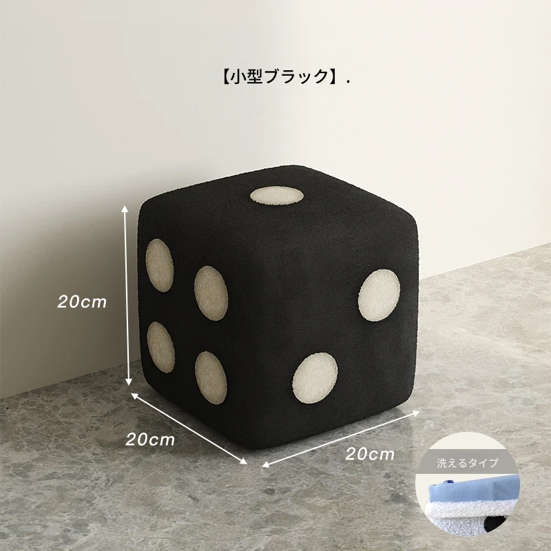 サイコロスツール【無垢材フレーム】黒-小サイズ(洗える)