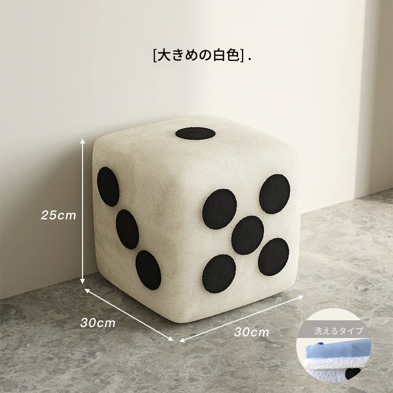 サイコロスツール【無垢材フレーム】白-大サイズ(洗える)