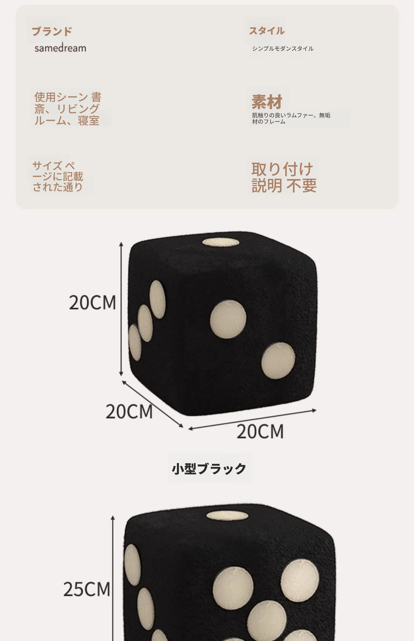 サイコロスツール【無垢材フレーム】黒-大サイズ